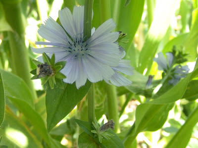 While peeping at the corn I spied this beautiful flower. It is from a radicchio that I've let go to seed.